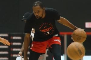 火箭官方晒KD训练视频预热:周一媒体日 大家好好熬过周末吧