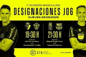 西甲第6轮裁判安排:奥蒂兹执法巴萨,科尔德罗主裁奥萨苏纳